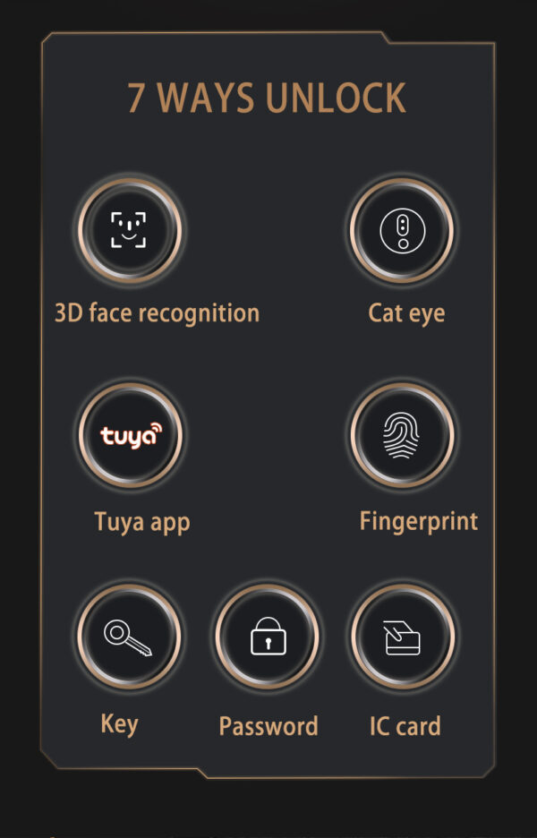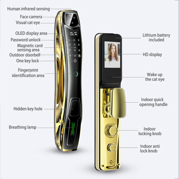 The WSI Smart Lock RK06 features advanced face recognition technology and supports up to 100 fingerprints, passwords, and cards for versatile access options. Powered by a 4200mAh lithium battery, this aluminum alloy lock ensures durability and reliable performance. Its sleek design fits most door sizes, providing both security and convenience.